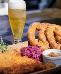 Oktoberfest: Pork Schnitzel, Homemade Pretzels, Braised Red Cabbage, & Warm Apple Crisp