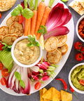A velvety, spiced butternut squash hummus that celebrates the flavors of the season, served with a vibrant assortment of fall crudités—crisp, colorful, and perfect for dipping. This autumnal platter is ideal for grazing, gathering, and adding a warm, seasonal touch to your holiday spread.