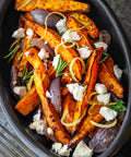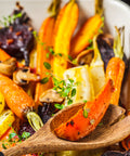 A medley of autumn’s sweetest roots—carrots, parsnips, and sweet potatoes—roasted until caramelized and tender, then glazed in barrel-aged bourbon maple syrup for a rich, smoky-sweet finish. This side dish brings depth, warmth, and a touch of Southern charm to your Thanksgiving table, balancing earthy flavors with a hint of indulgence.